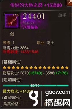 【便玩家游戏5月25日消息】全民奇迹战士八阶武器大地之怒加多少攻击?战士八阶单手武器+15大地之怒加多少攻击?战士八阶单手武器大地之怒需要多少力量多少敏捷?下面搞趣网小编带给大家关于+15大地之怒的图文攻略:
