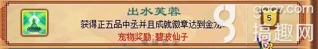 当玩家的成就徽章等级达到金龙C且官职达到正五品中丞,可获得特殊成就出水芙蓉。在出水芙蓉成就的界面上点击奖励项即可领取宠物碧波仙子(一定几率出现变异)。其实这个条件还是有一定的难度的,其中官职达到正五品中丞难度不算非常大。但是成就徽章达到金龙C就有些难度了,要想成就徽章达到金龙C大概玩家的成就要到3520。