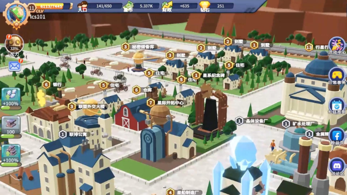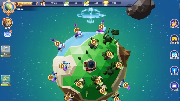 《一起建奇迹:星系》采用lowpoly风格,微景观式的星球建筑和开放式的宇宙背景营造出轻松却又紧凑的游戏氛围。游戏整体设计强调自由度与个性化,每位玩家都可以将自己的星球建造成风格独特的宇宙基地,在视觉上享受到细腻的太空美感,同时享受建设与探索的宁静与满足。