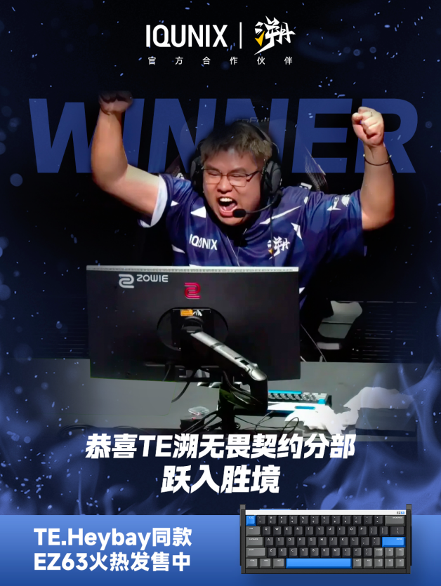 IQUNIX持续加码电竞生态布局,2025年成为TE溯俱乐部无畏契约分部、XLG 俱乐部无畏契约分部官方合作伙伴,并且EZ63磁轴键盘TE溯俱乐部无畏契约分部选手助力,打进曼谷大师赛;