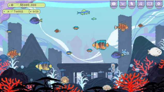 A:实不相瞒,在立项之初,我们考察了市面上多数的养鱼游戏,它们多注重于鱼类养成这个方向,我们虽然也从中学习了一些技巧,但成员们始终想做一些不一样的尝试,这个背景和装饰系统就是我们的答案。