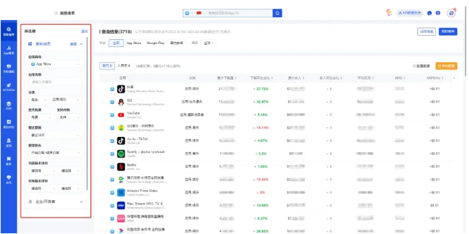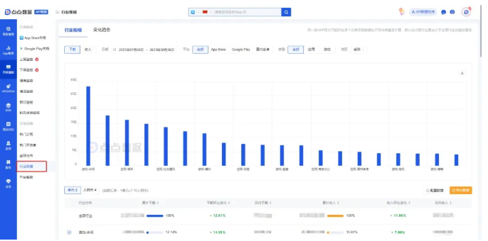 点点数据拥有业内最全的应用/游戏数据库,覆盖AppStore、Google play、steam以及国内9大安卓应用商店。现有功能已经覆盖包括获客策略、用户参与、变现模式以及辅助分析在内的移动应用运营层面全周期阶段。透过全球各大应用商店聚合数据,借助全球应用下载收入、用户分布趋势,线上产品可以进行全行业规模分布和市场跟踪,精准定位全球增长趋势和市场。