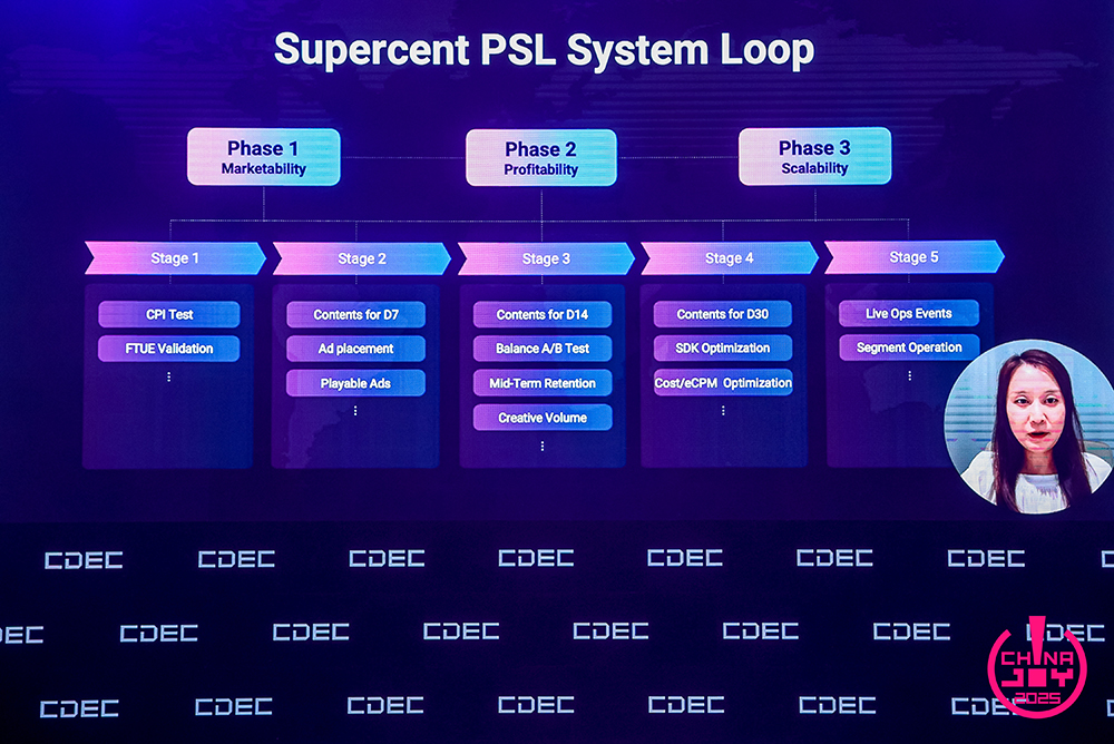 Supercent全球发行总监权瑞希分享了公司如何通过“AI驱动”和自研的“发行系统循环(PSL)”应对快速变化的游戏市场环境。她指出,内容消费方式的改变、时间争夺的加剧,以及生成式AI的崛起,正重新定义全球游戏出版方式。Supercent通过PSL系统实现了多款全球性热门游戏的持续发布,并逐步从超休闲扩展到混合玩法领域。公司成立三年内,全球累计下载量突破12亿次,月新增用户达6000万,现已跻身全球游戏发行商前五强。会上还展示了公司在营销预测、自动化测试和视频数据分析中的AI实际应用。Supercent欢迎有志于走向全球的中国开发团队与其合作,共同探索更广阔的国际市场。